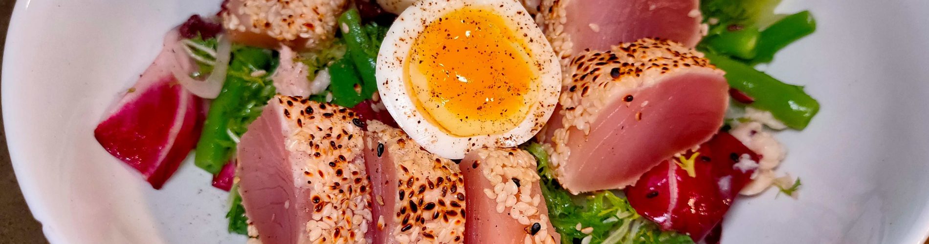- Albacore tuna tataki & Fingerling Potato 炙燒鮪魚和帶皮薯片